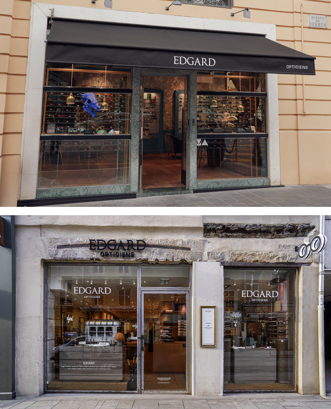 Ci-dessus, de bas en haut : Edgard Opticiens a ouvert deux nouvelles boutiques en 2025, à Nice et Nancy.