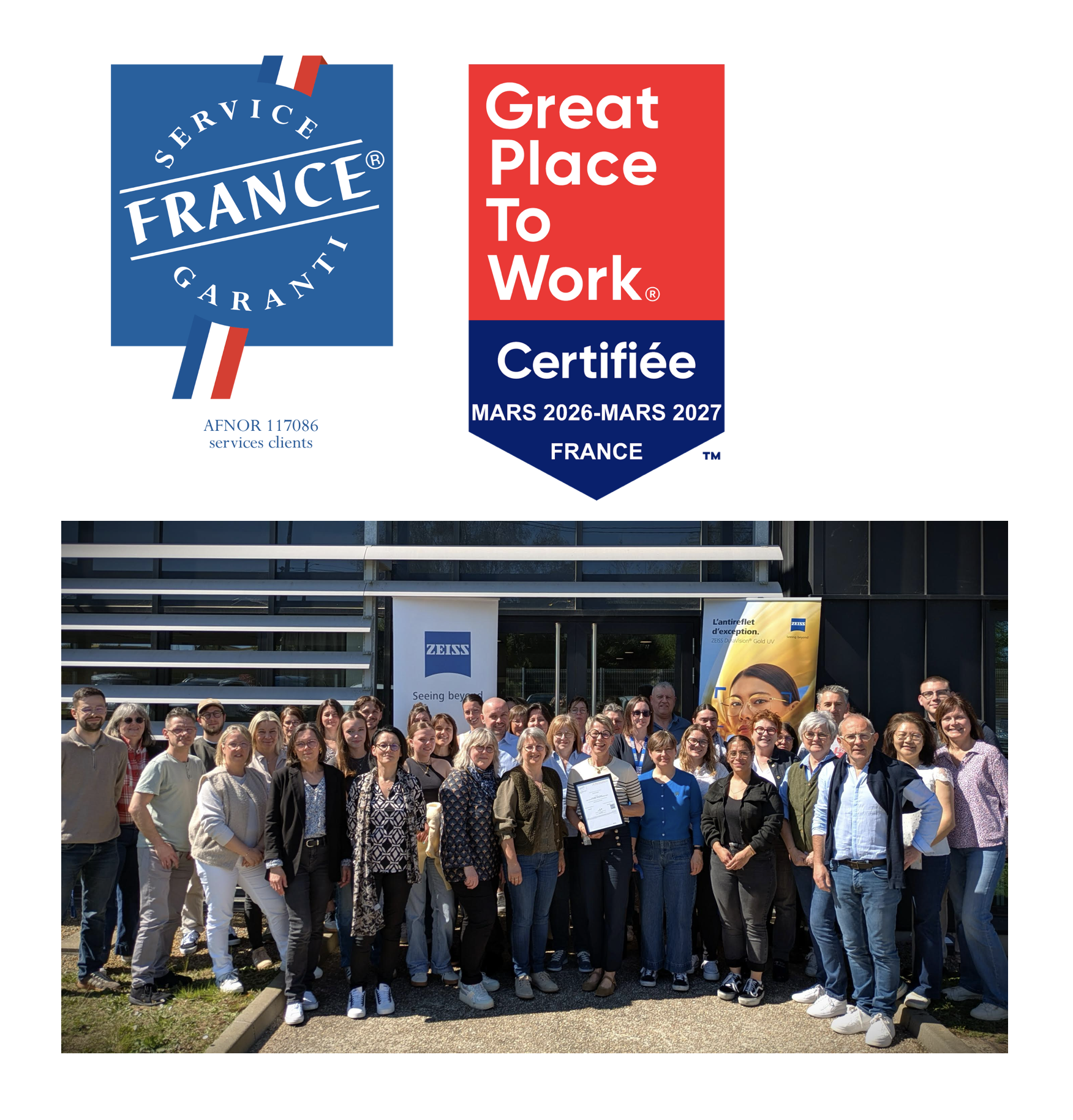 Certifications "Service France Garanti" et "Great Place to Work" : Zeiss voit double