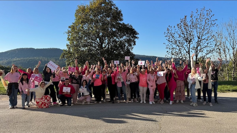 Ne pas relâcher l’effort, au contraire l’intensifier. En 2025, la direction de Morel a mené différentes actions solidaires, impliquant collaborateurs et clients, afin de soutenir l'association Ruban Rose. Cela fait des années, rappelons-le, que le lunetier jurassien apporte son soutien à cette asso historique qui coordonne depuis 1994 des opérations un peu partout en France et fédère les bonnes volontés en vue de récolter des fonds pour la recherche et la prise en charge des malades. Tout récemment, le samedi 4 octobre, un groupe de collaborateurs de la société s'est ainsi aligné sur la Marche Rose, au départ de Champagnole. « Malgré la pluie, la bonne humeur et la détermination étaient au rendez-vous », raconte Amélie Morel. À cette occasion, la présence de chaque participant - vêtu de rose comme il se doit - signifiait 10 euros reversés à l’association. Autre levier d’action qui, celui-ci, implique les clients du lunetier : pendant tout le mois d’octobre, pour chaque monture rose achetée parmi une sélection proposée sur le site web BtB (ou via les commerciaux), 2 euros iront à la structure Ruban Rose. À noter : chaque commande web sera accompagnée d’un porte-clés Octobre Rose en acétate issu de chutes de production, conçu et fabriqué à Morbier, dans les ateliers de Morel.